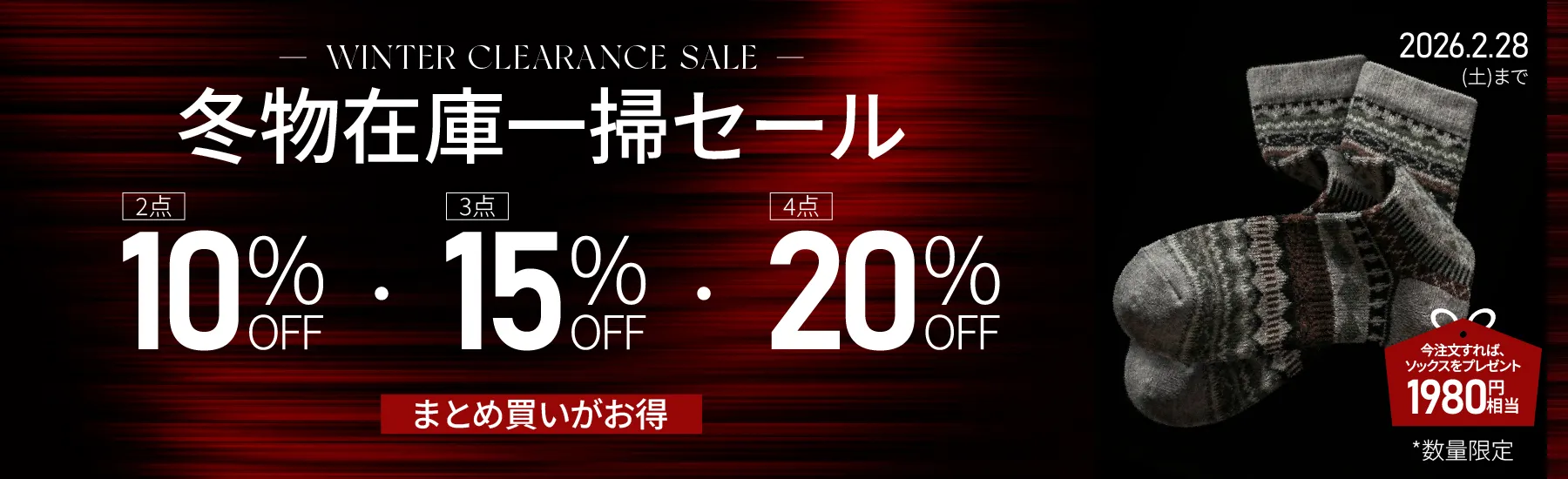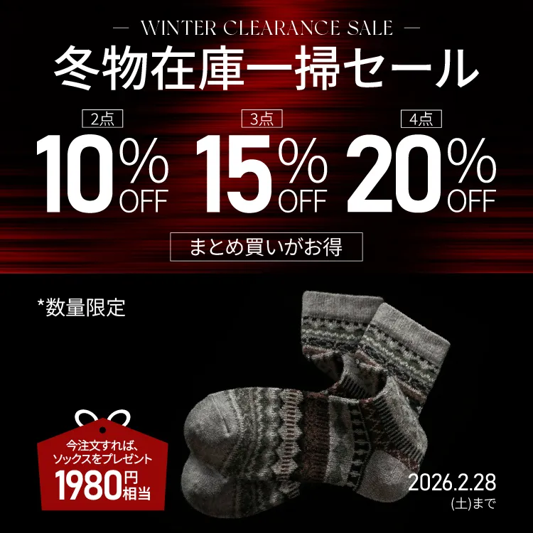 全商品2点で10%OFF、3点で15%OFF、4点で20%OFF!