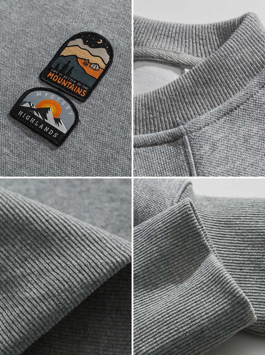 裏起毛 スウェット メンズ アメリカンヴィンテージ ワッペン アウトドアスタイル ラグランスリーブ ゆったり 体型カバー 暖かい