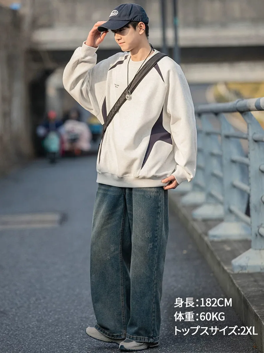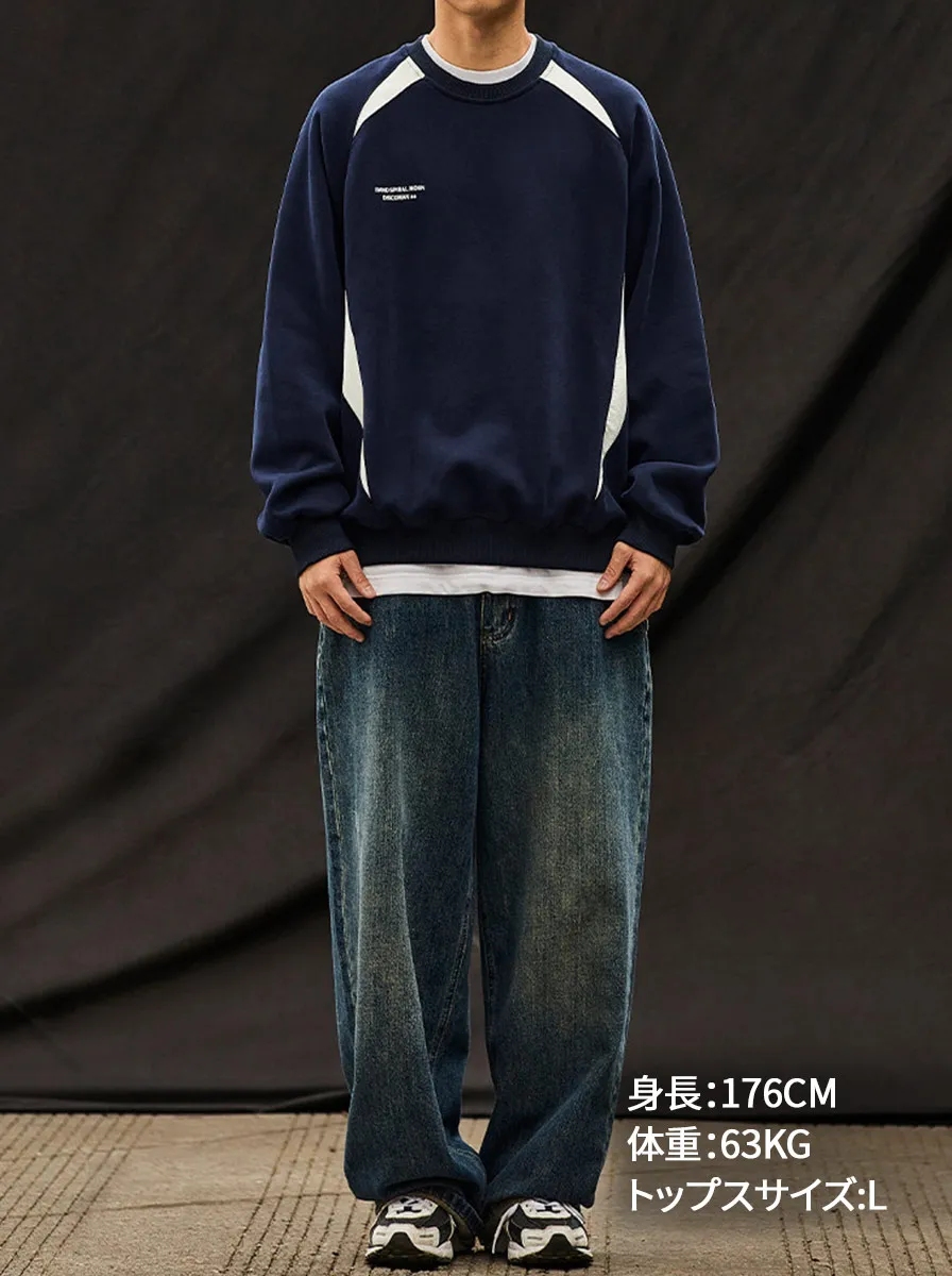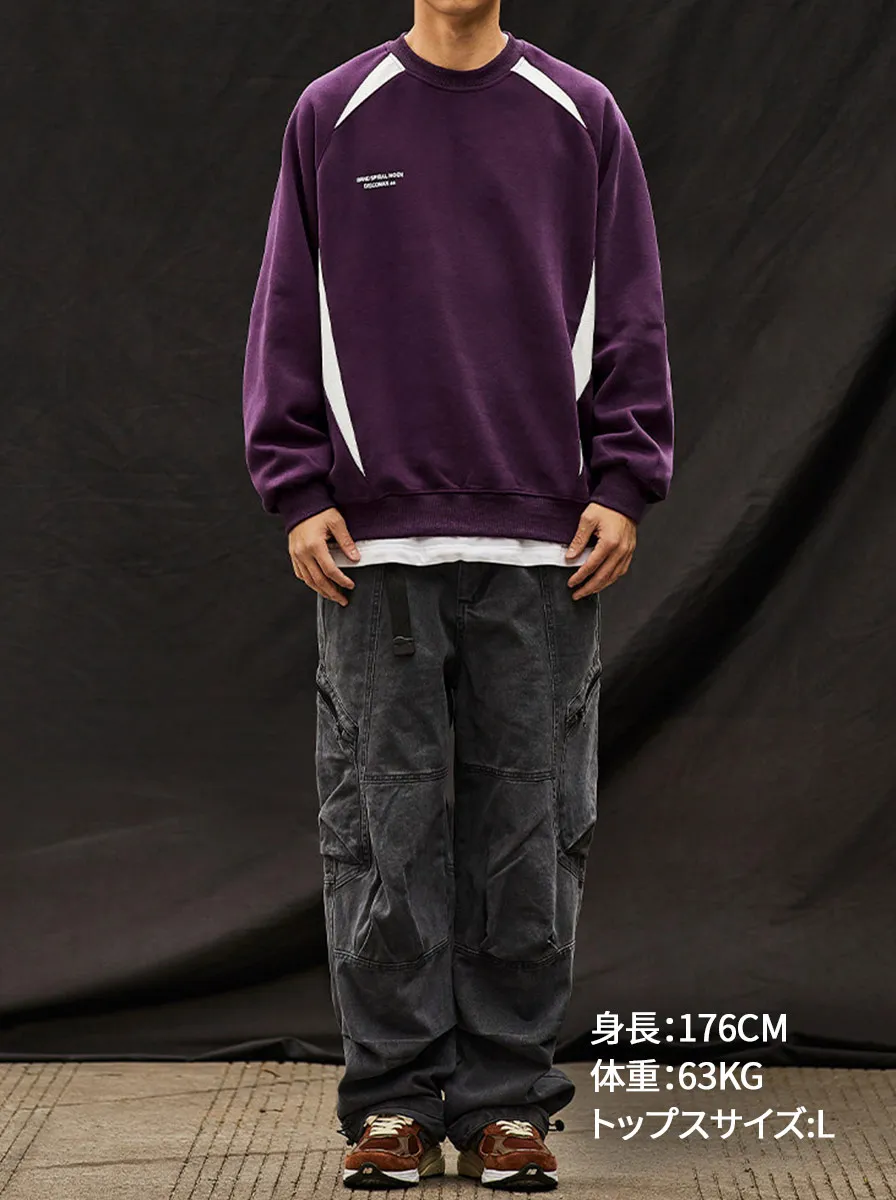 配色 切り替え スウェット メンズ スウェット ラグランスリーブ スポーティ ゆったり 体型カバー アメリカンヴィンテージ 春秋冬