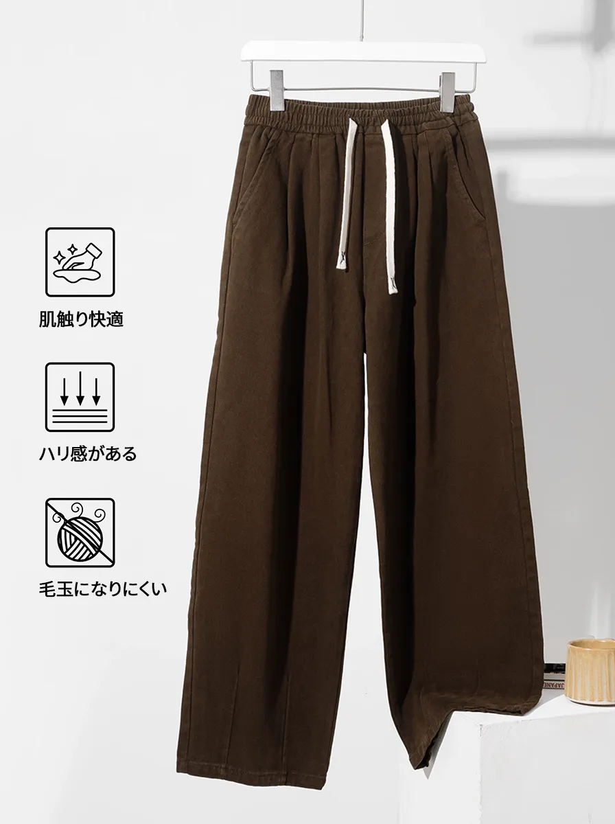 シェフパンツ 裏起毛 ワイドパンツ 表地コットン100% 暖パン ウエストゴム イカジュアルパンツ