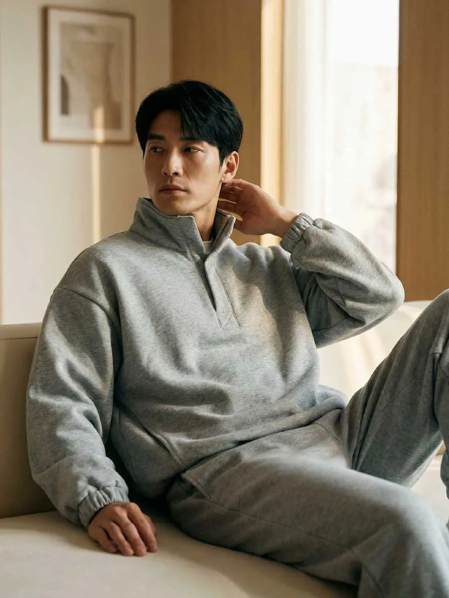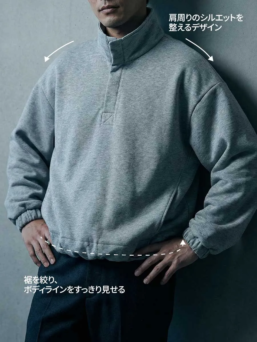ハーフスナップ スウェット メンズ スタンドカラー 裾ゴム ジャケット 立ち襟 ゆったり 体型カバー 春秋 無地 大人スタイル