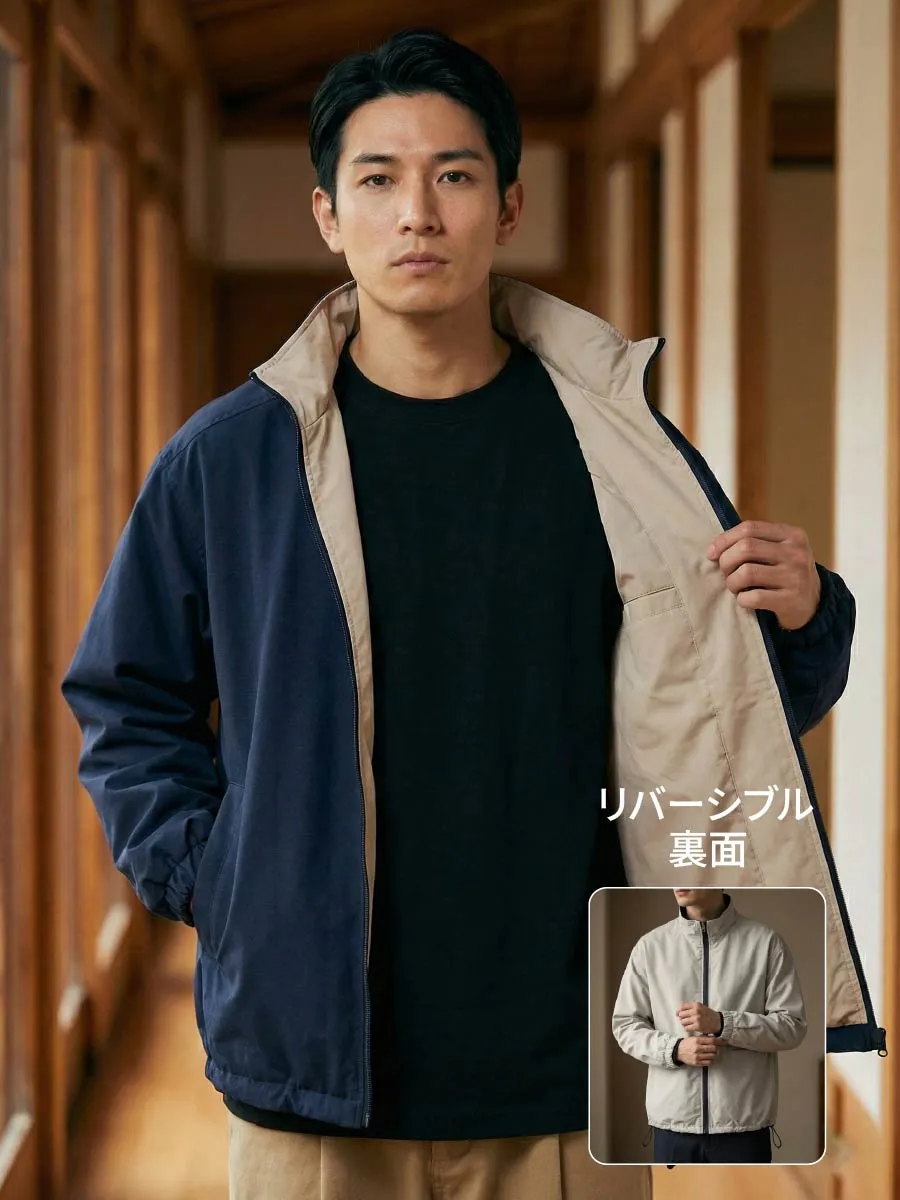 リバーシブル ジャケット メンズ 2WAY スタンドカラー 裾ドローストリング ゆったり 体型カバー ライトアウター 春秋