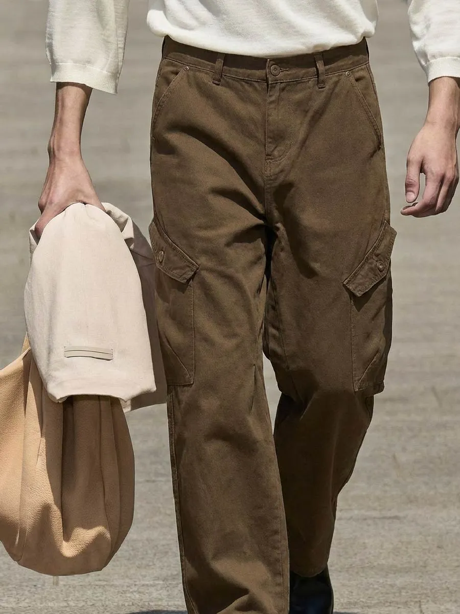 カーゴパンツ メンズ コットン100% ワイド ストレート ワークパンツ ゆったり 体型カバー 厚手 オールシーズン対応