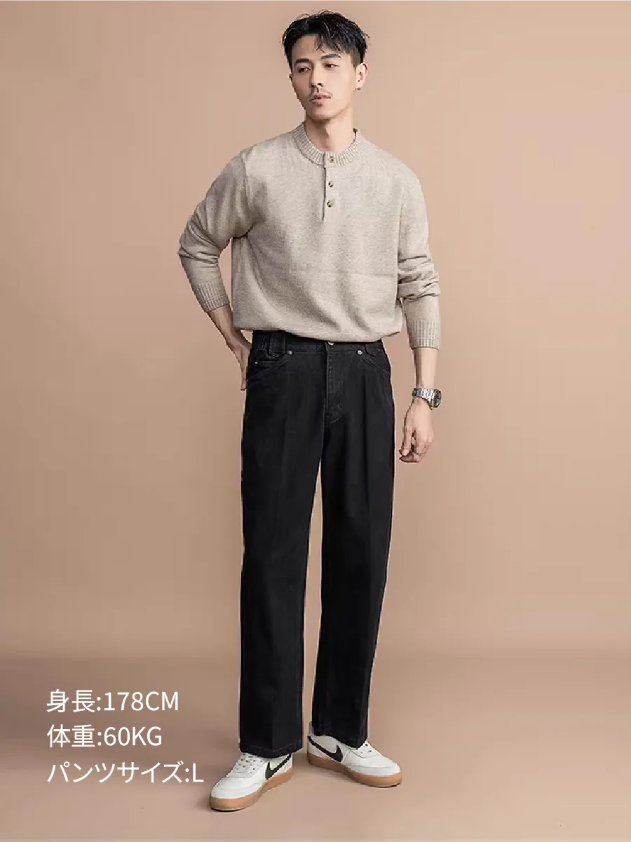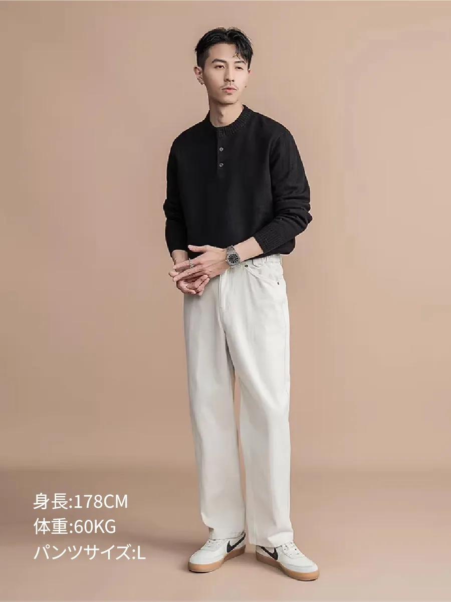ウォッシャブル ヘンリーネック ニット セーター 柔らい肌触り 洗濯機洗い可能