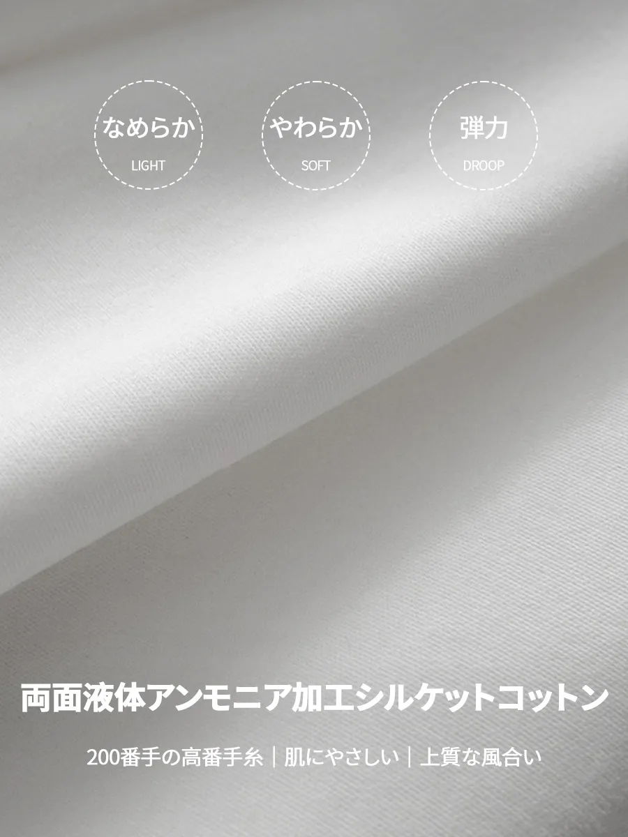 厳選した100%コットンを使用し、天然素材ならではの、ベビー肌のようになめらかでやさしい触り心地を実現しました。通気性に優れ、着用と洗濯を重ねても風合いが長く続く、上質な素材です。