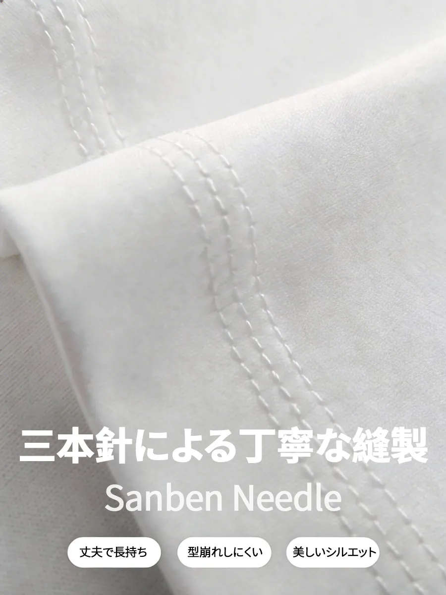 三本針ステッチで首元をしっかり補強し、型崩れを防止