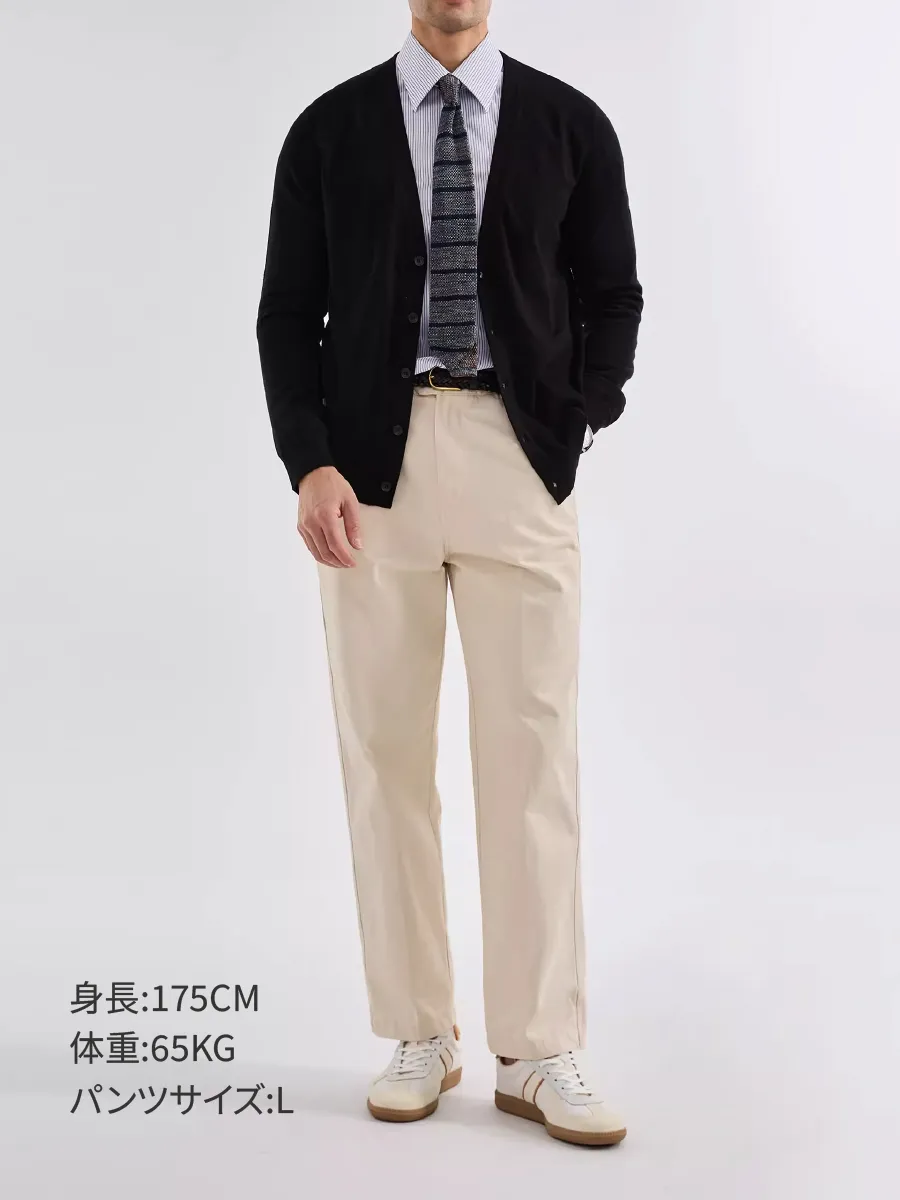クラシックな紳士のシルエットから着想を得たデザイン。ミニマルなVネックカットと端正な5つボタン仕様により、男性らしいすっきりとした佇まいを演出します。余分な装飾を省き、“機能美”を追求したシンプルな一着。上質なスラックスと合わせてビジネスシーンに、また白シャツの上に重ねて休日のリラックススタイルにも。落ち着いた品格と洗練された大人のスタイルをさりげなく引き立てます。