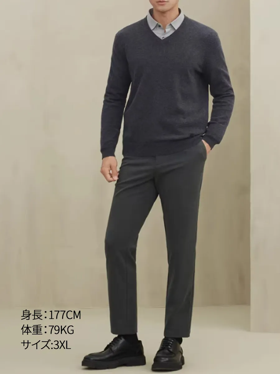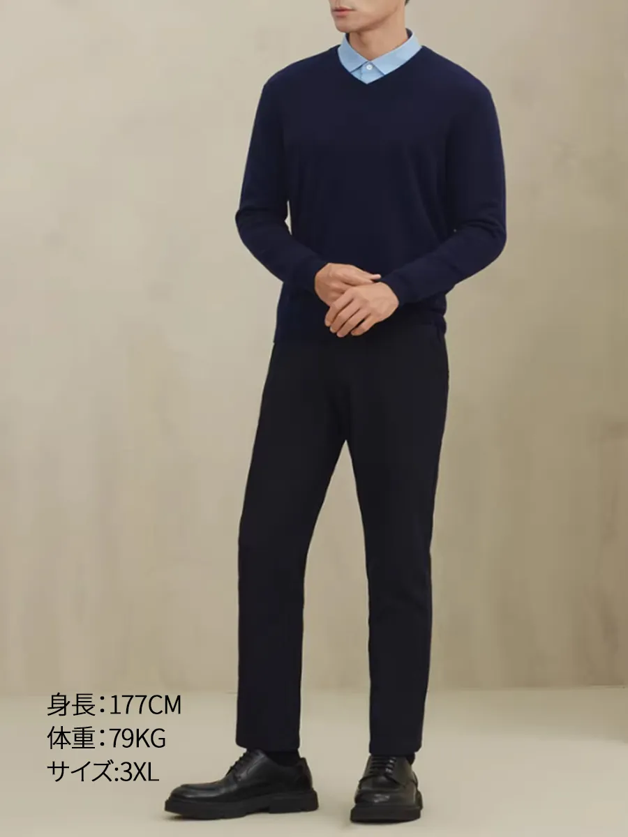 高密度 細ゲージ Vネックニット セーター ビジネスカジュアル 洗濯機洗い可能
