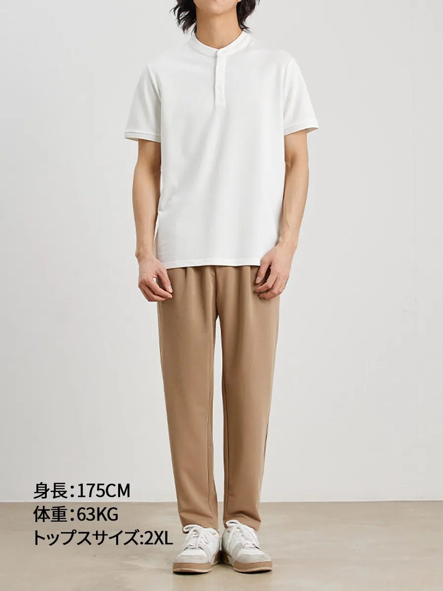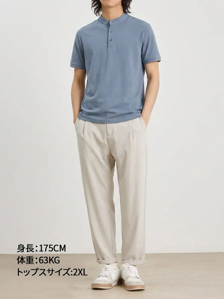 高混率コットンヘンリーネック半袖 ハリ感 通気性 ビジネスカジュアルスタイル