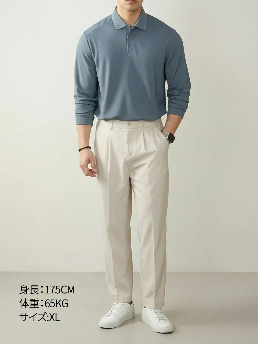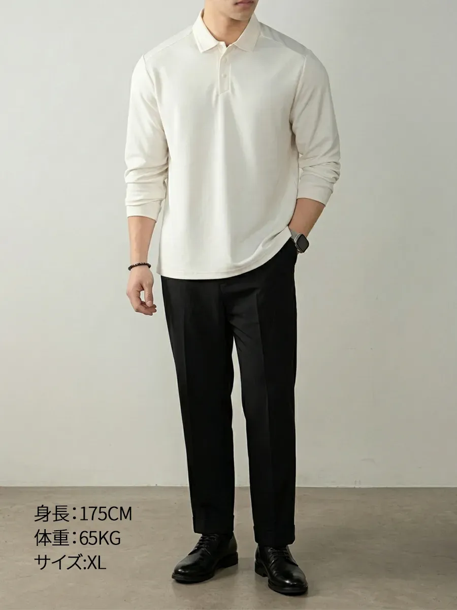 前立てに斜めステッチを施し、ミニマルな隠しスナップボタンを組み合わせたポロシャツです。従来のボタン仕様とは異なるデザインが、さりげない個性とモダンな印象を与えます。3D立体裁断と高密度リブのフラットカラーがバランスよく調和し、ほどよいハリ感とやわらかな着心地を両立。ワークウェアの機能美から着想を得た設計は、ビジネスシーンとリラックスした日常の間を自然につなぎます。通勤スタイルにも、落ち着いた上質感を添える一枚です。