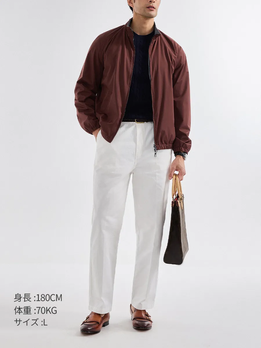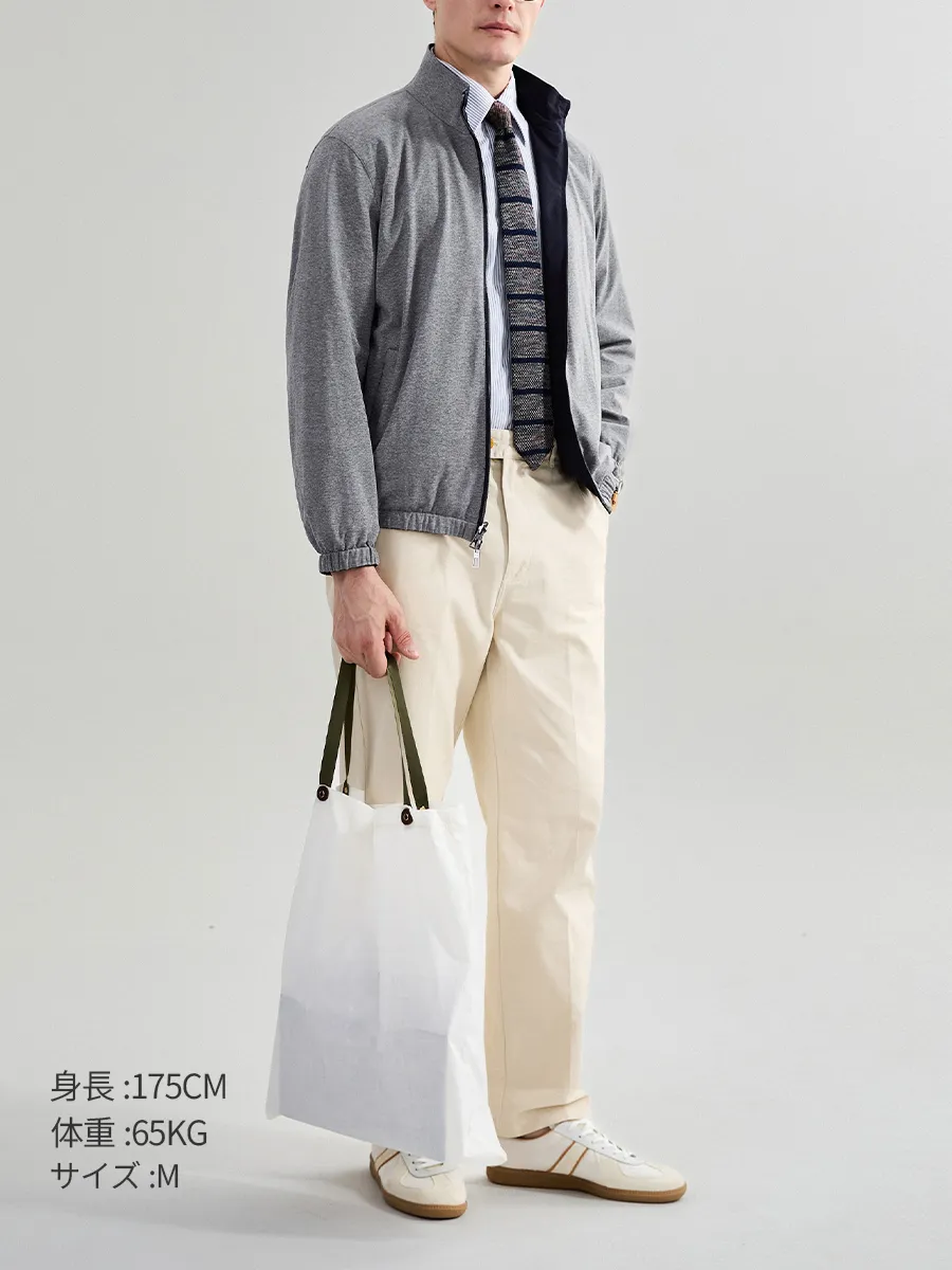 クラシックなハリントンジャケット(Harrington Jacket)の洗練されたカッティングを継承し、都会で忙しく過ごしながらも“エレガントな実用主義”を求める大人の男性に向けた一着。機能性と日常性を絶妙に両立し、片面はミニマルなテック仕様の防雨デザイン、もう片面は柔らかで質感のあるニットに仕上げています。デザインのポイントは“シームレスな切り替え”にあり、ビジネスシーンから週末のドライブまで、シーンや気分に合わせて一着で自在に対応します。