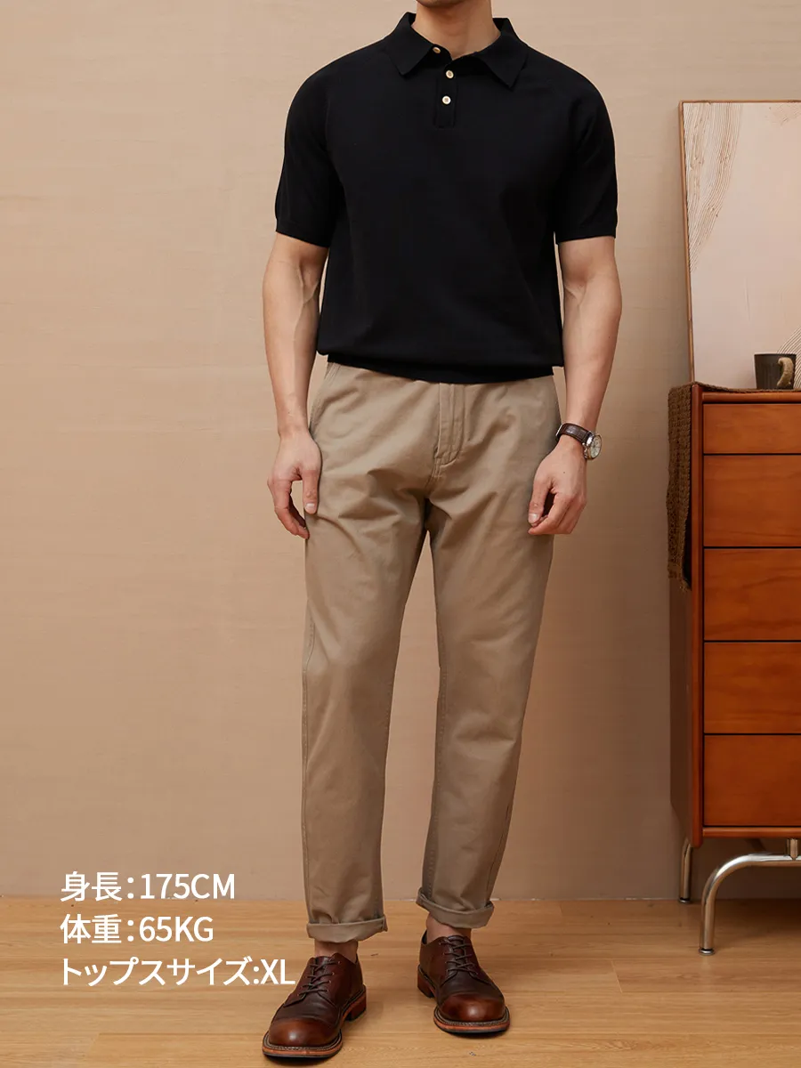 この半袖ポロシャツは、20世紀60年代のクラシックなレトロニットを現代的に再構築した一着です。精緻なニットの質感とラグランスリーブ(Raglan Sleeves)のデザインにより、大人の男性に余裕のあるスポーティーな上品さを演出。だらしないルームウェアではなく、忙しい都市生活に対応する“スマートな装い”として、レトロ美学と現代機能の絶妙なバランスを実現しています。