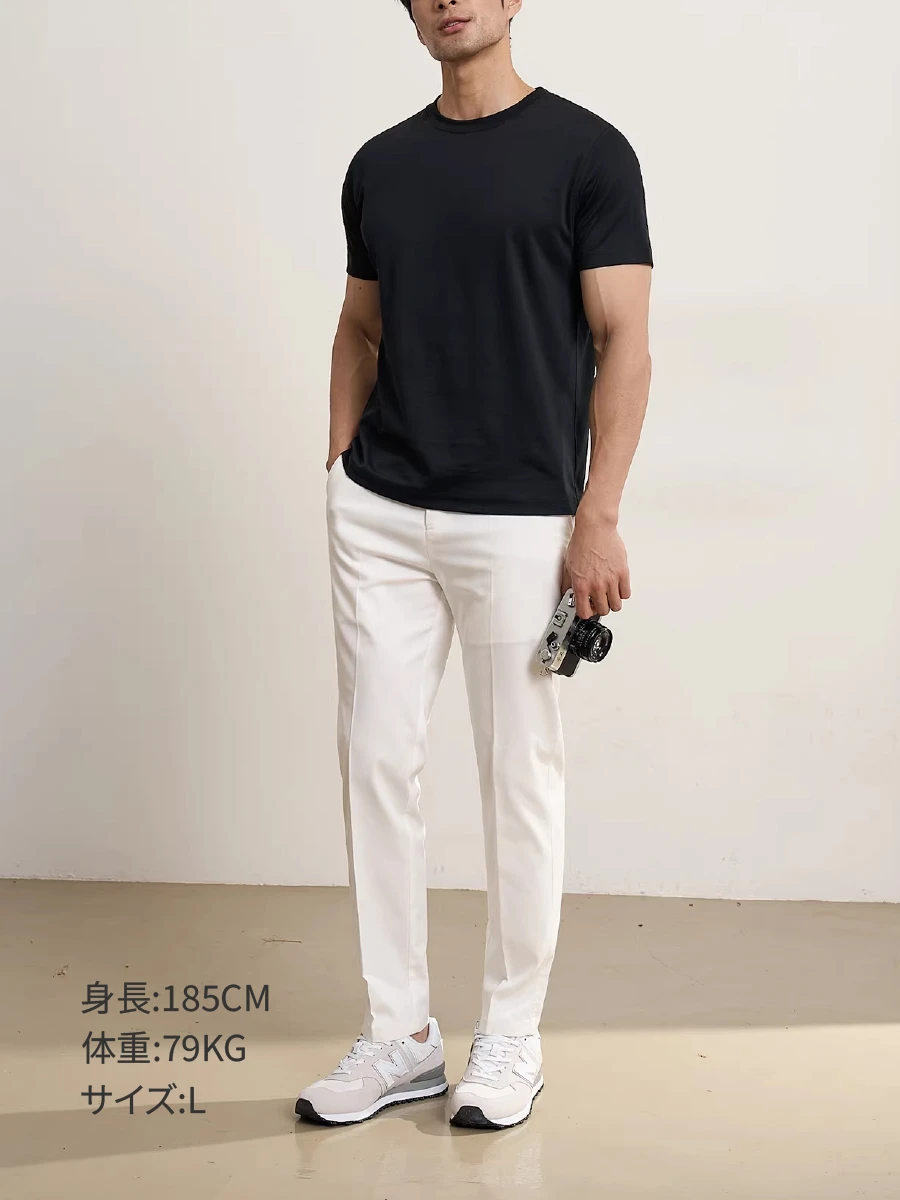 白Tの美しさを追求した、ミニマルな一枚。余計な装飾をそぎ落とし、糸の番手にこだわることで、ほのかな光沢と滑らかな表面感を実現しました。インナーとしてはもちろん、一枚でも様になる存在感。密に編み上げた生地がシルエットを整え、カジュアルから軽いビジネスシーンまで、清潔感のある落ち着いた印象を演出。