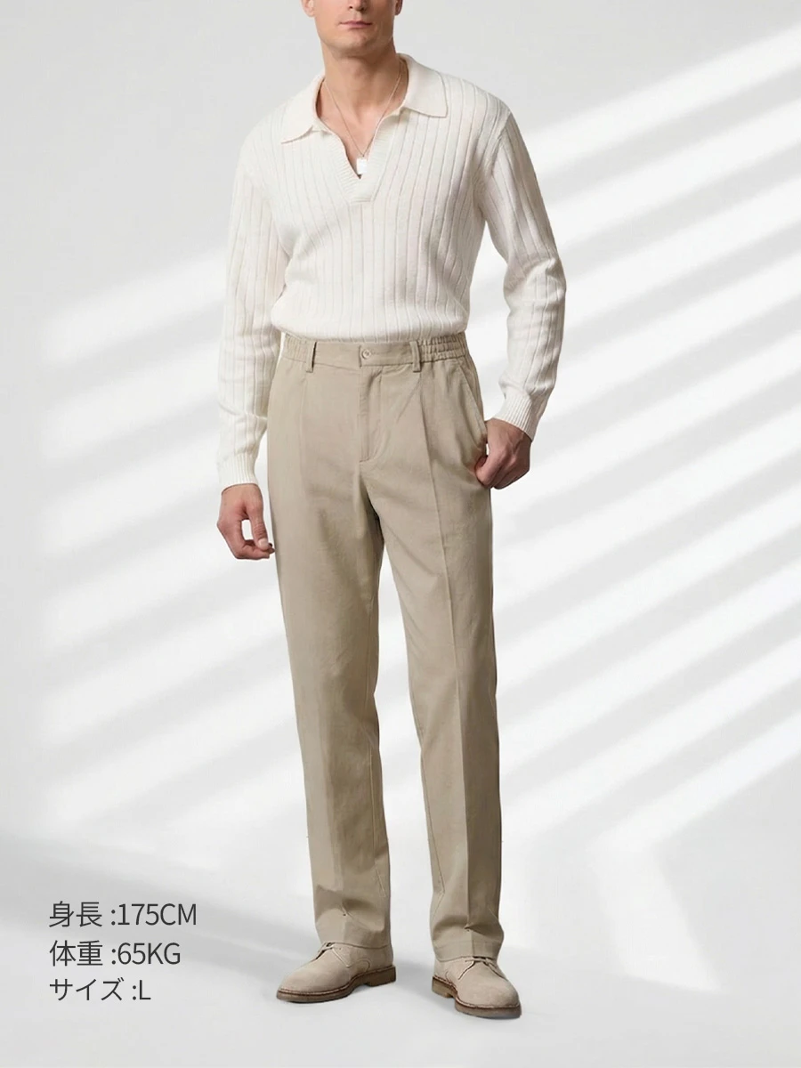 接触冷感 通気性 すっきり見え リヨセル×リネン混 カジュアルパンツ